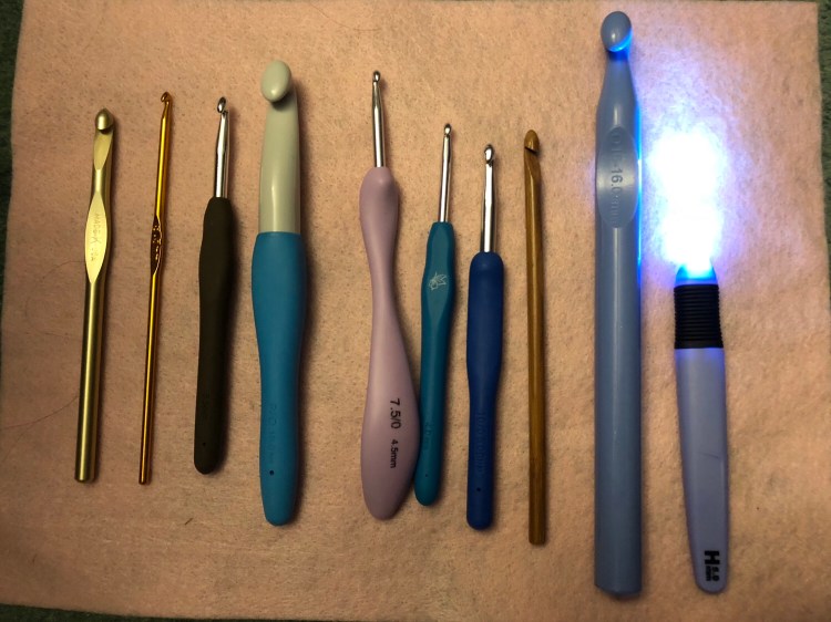 Even in looking at the hooks up close there are options enough to make your head spin: bamboo, plastic, steel, aluminum, lighted, the choices are endless, and that doesn’t even consider the handle options. But a lot depends upon your style of crochet and what you crochet.