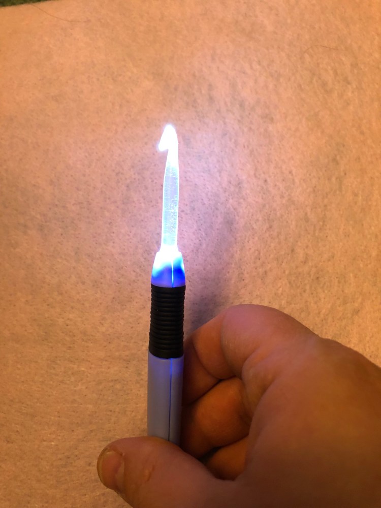 These are the most gimmicky things I think I have ever purchased and I can’t say I regret it. Yes, these are lighted crochet hooks. They are not the most practical hooks in the world, but they aren’t without merit…just not for everyday use.