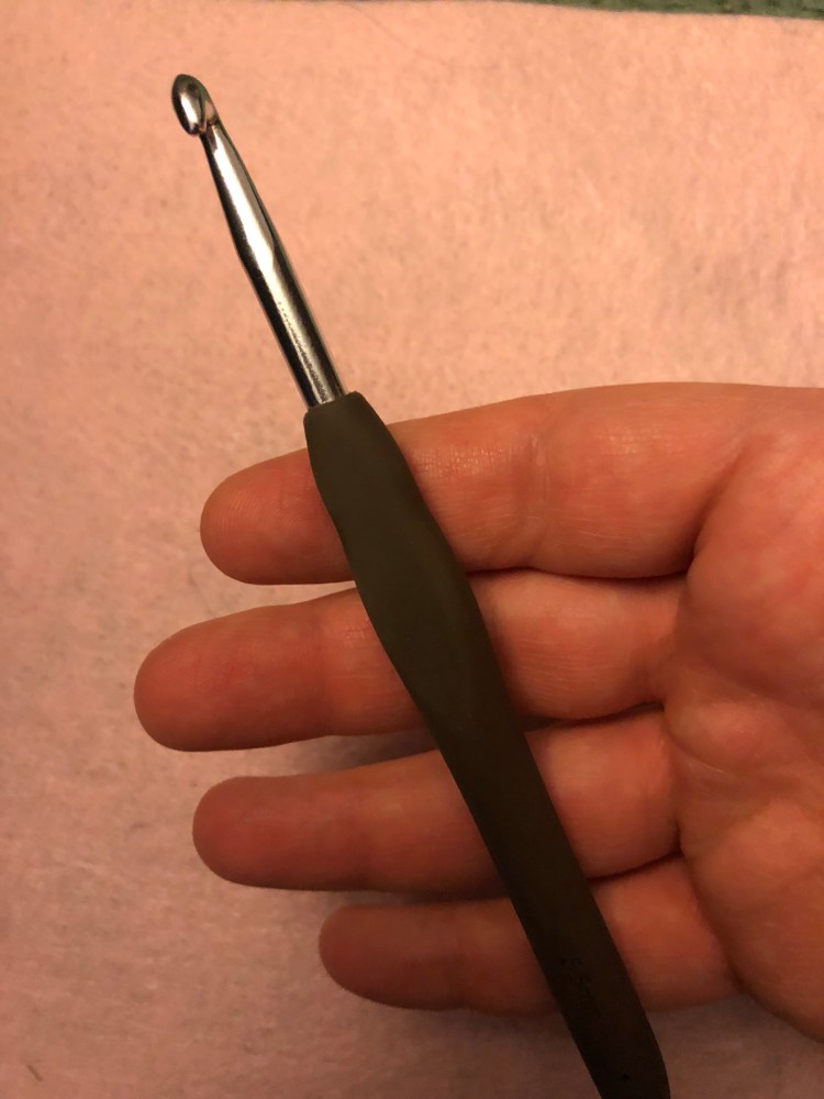 For the other two types of hooks, I found the steel hooks easily separated from the rubber grips and I would end a stitch with two pieces of a hook- the metal part dangling from my work and the rubber piece in my hand. I tried putting them back together with super glue, but that didn’t seem to work well either. I haven’t been able to part with these hooks, but I don’t use them.